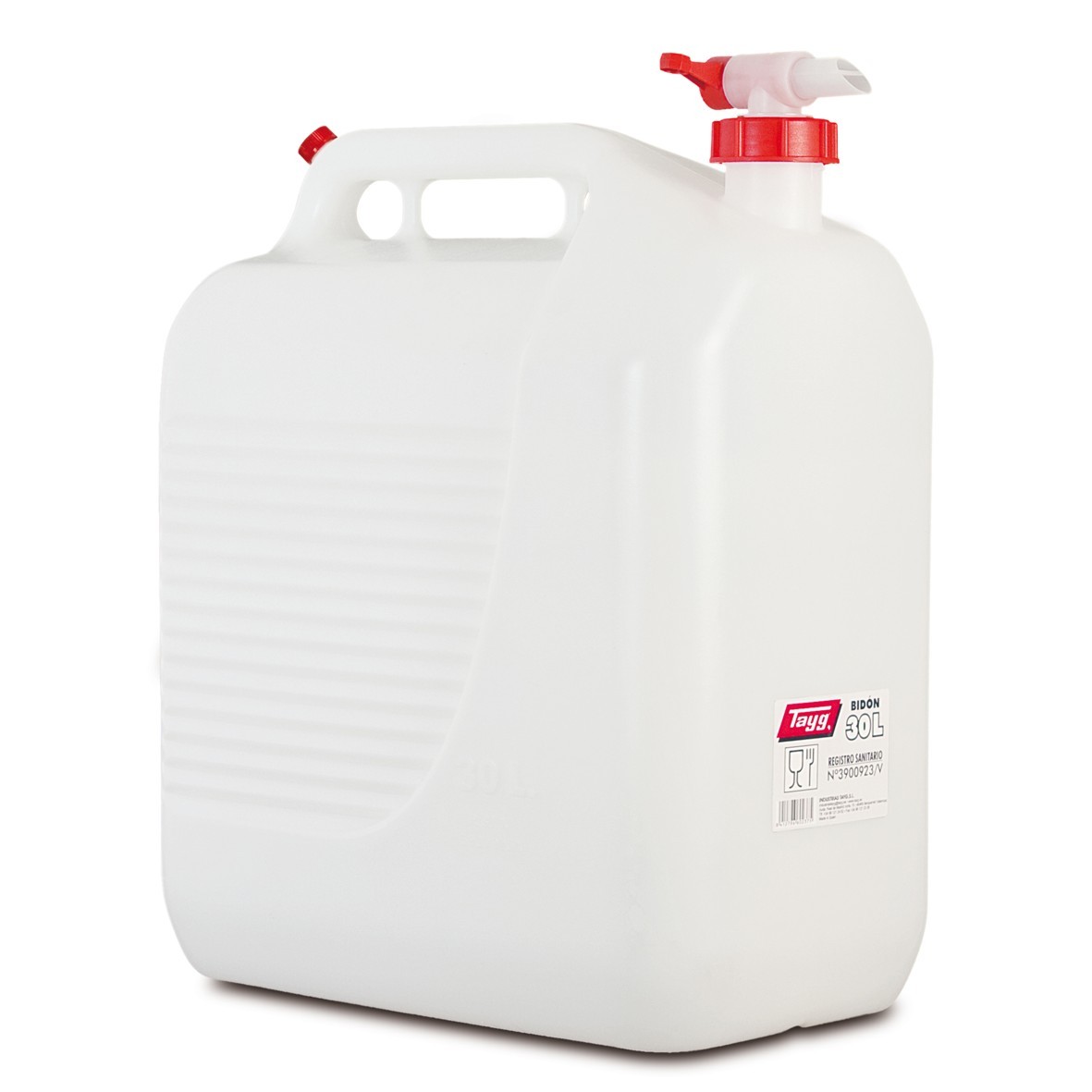Bidón con grifo Tayg de 30 litros de capacidad, apto para uso alimentario.