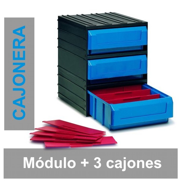 Contenedor Tayg 3 cajones 300/3 Módulo negro + 3 cajones azules + 9 separadores rojos