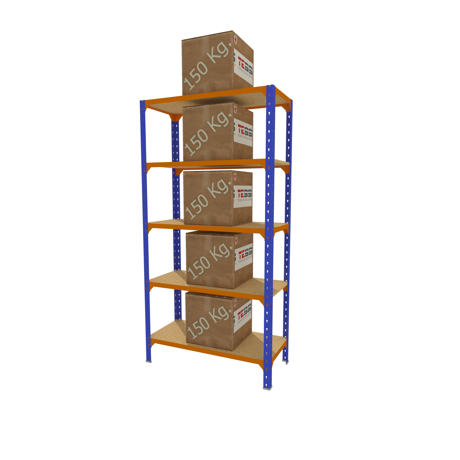 - Estantería metálica modelo Maderclick de 5 baldas con tablero aglomerado 12mm incluidos.
