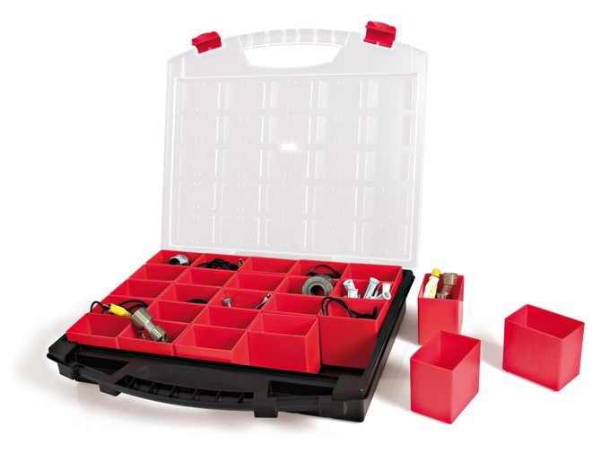 Base negra Tapa transparente Cajoncitos rojos