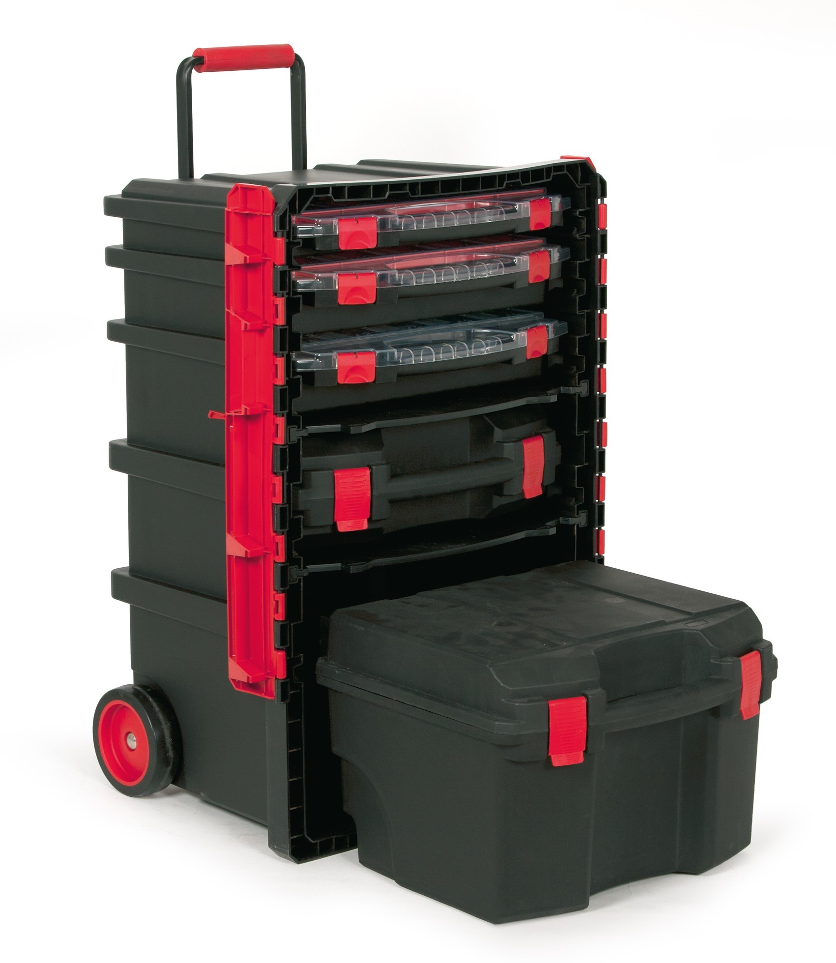 Caja de herramientas con ruedas Tayg modelo Trailbox nº 59, modelo Profesional. Incluye 3 estuches clasificadores, matela y caja de herramientas.